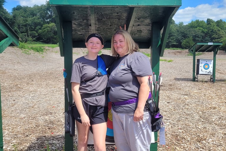 The winner of the recurve shoot off was Shelby Begley. Shelby won with 2 points to Clara’s 1 point in ” the closest to the center” mini round by pinwheeling her last arrow. She has been shooting since she was very young and has practiced with compound and recurve bows. Her overall showing at the tournament was a personal best! Following the tournament when asked for a quote she said, ” The quote that I have in my room is ‘An arrow can only be shot by pulling it backwards. So when life is dragging you back with difficulties, it means that it’s going to launch you into something great. So just focus, and keep aiming.'” This was the first tournament that Shelby and her mom, Barbara Begley, got to compete with each other. They both did an amazing job, and it was a so much fun to watch this mother and daughter duo shoot together.